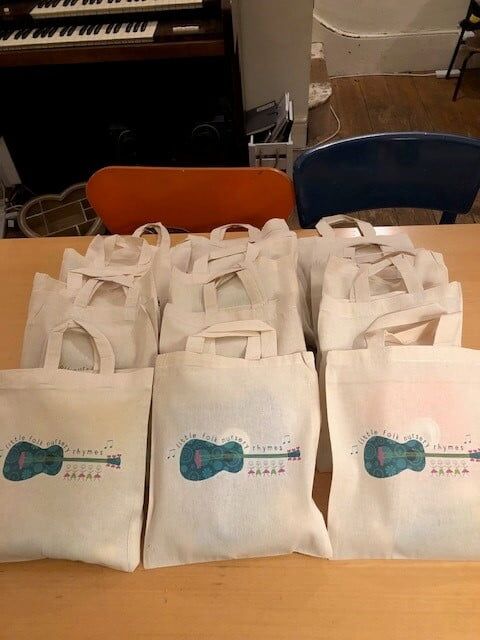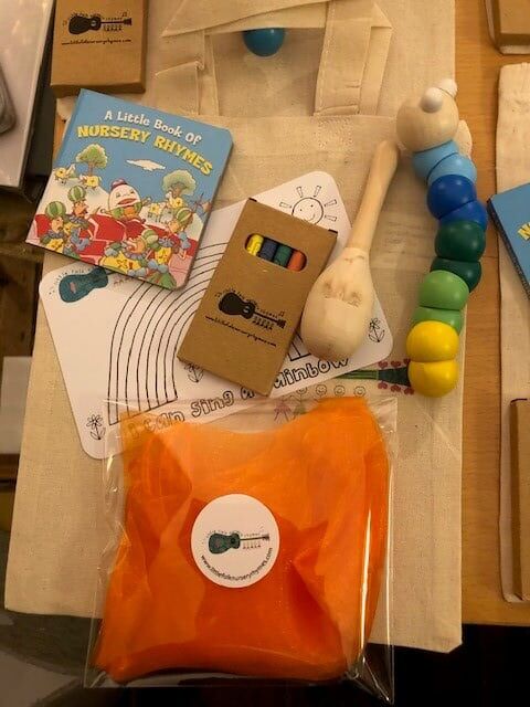 The little folk nursery rhymes mini tote is full of fun accessories for your little one(s) to enjoy! Whether just playing on their own, while attending one of our classes in-person or online, or watching our YouTube videos, all these stimulating items support early years learning and are lots of fun!